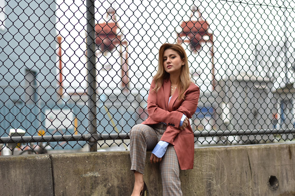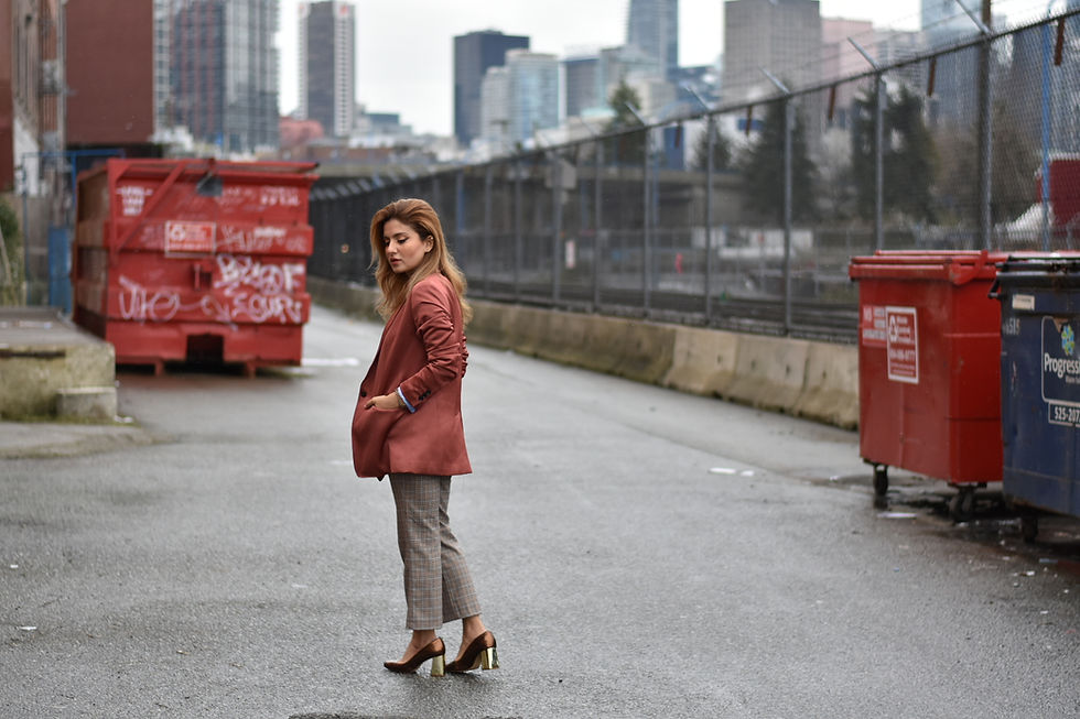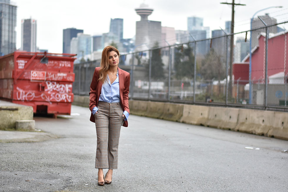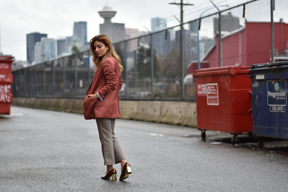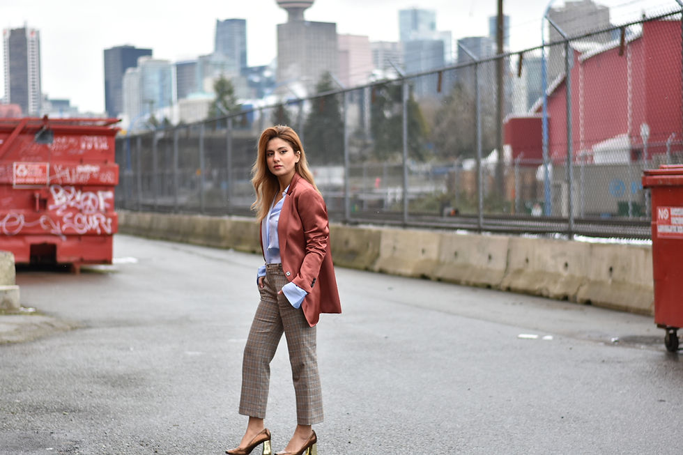 Here's a typical look that I sport at work. I always go with higher waisted dress pants to create a more elongated look and pair it with heels that are a bit more neutral in color. As for blazers, I always pick those that are slightly more menswear inspired because they are longer and more loose fitting. I also love to go with mix and matching colors to add more fun to the outfit. Let me know in the comment section what do you think about this formal look.