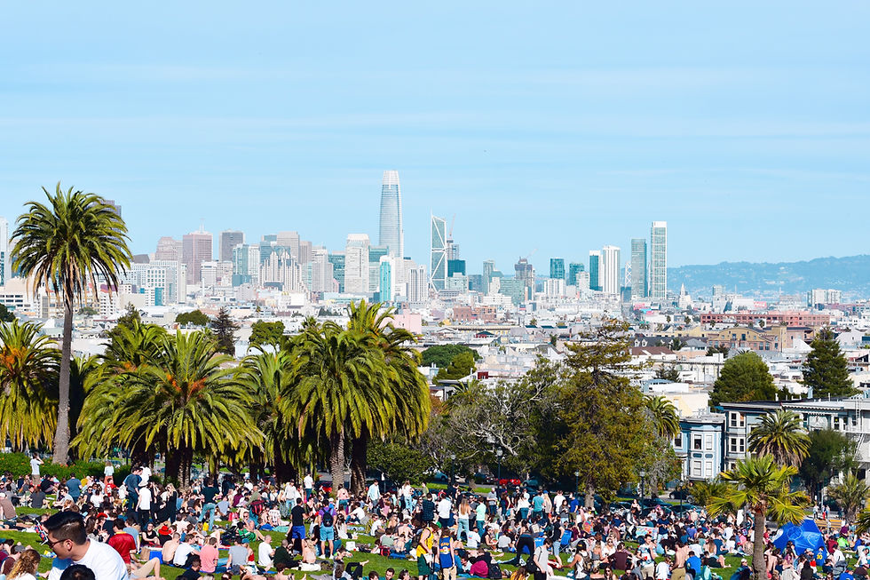 Called one of the coolest neighbourhoods in 2016, Mission district is the place to try some Mexican food at a roof top and then grabbing a couple of beers or a cold class of white win and "chilling" at the Dolores Park. Attracting thousands of young people on sunny days, the park offers an unobstructed view of downtown San Francisco, specially from the southwest corner.